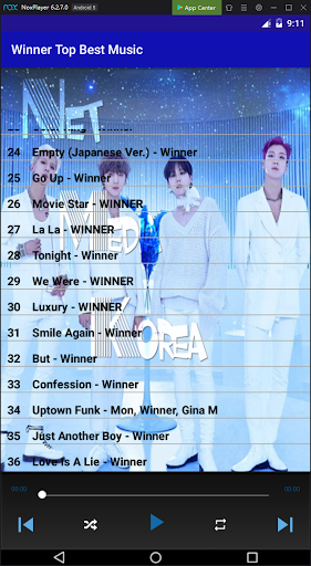 If you want to listen to music offline the songs of your favorite Korean singer, you can consider our Winner Top Best Music application. Winner Top Best Music allows you to listen to all the best songs of Winner that you love wherever you are.