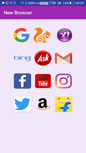 From this browser application you can browse Google, Ask.com, Yahoo, Bing , UC , Gmail, Facebook, YouTube, Twitter, Instagram, Amazon, Flipkart etc.