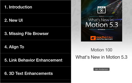 In this free 8 tutorial "What's New" course, Apple Certified trainer Iain Anderson explains and explores all the major new features in Motion 5.3.