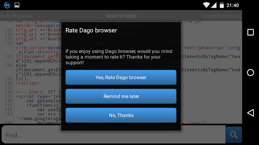 My IDEAL APP, No ads, no unnecessary permissions and most of all. Its lightweight, but it DOESN'T WORK for my 4.4.4 kitkat. Always have "source code failed to find" & "inspect element" doesn't show anything.