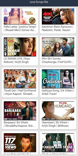 Huge collection of Hindi love songs is available in the best assorted playlists. The playlists include the best romantic songs of Bollywood legends, singers and superstars of Hindi movies. App contains huge collection of Bollywood Romantic Songs, Love Songs, Bollywood Classic Songs, Best of 90s, 90s Love Songs, Hindi Love Songs and blockbusters.