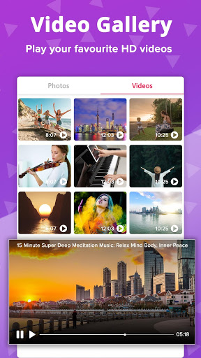 - Gallery comes with the integrated feature of video player, so you don't need to install a secondary video player when you're trying to play any video file. This way you can save some more space by having Gallery and Video Player in a single app.