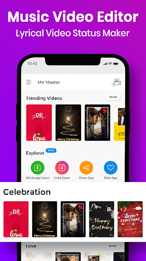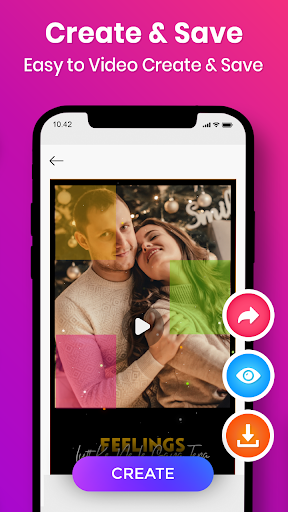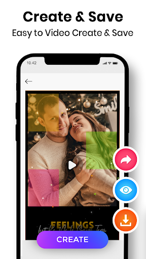 Video Maker & Photo Slideshow : Photo Slideshow Short Lyrical Status Make a Trending Video song with Free Video lyrical status And you can download the lyrical video and magic video after click on create and just select your own photo to make video status.