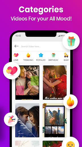 ☛ Categorized video status, just select your favorite photos.