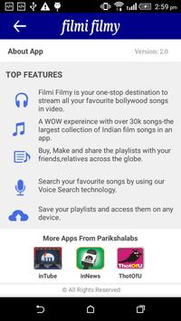 Using Filmi Filmy you can browse, search songs, play videos and enjoy! You can also create playlists based on period, mood, singer, actor, film and store them in your cloud account. Just login and see all your favorite playlists from any device. Share your playlists with your friends and family - send your feelings across with music videos! After all, each hindi song says something in glorious poetry.