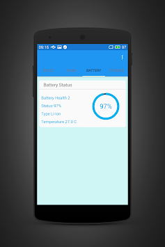 Status of Storage, Memory (RAM), Battery status , battery health ,task manager.