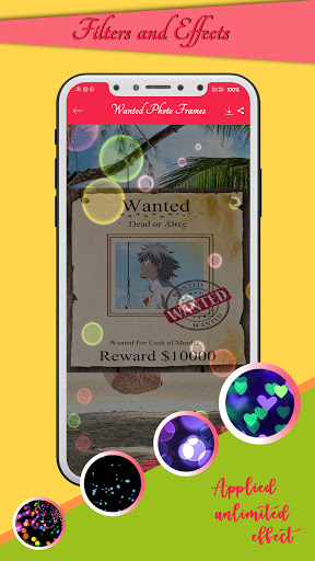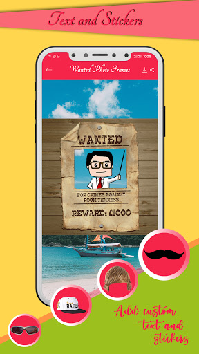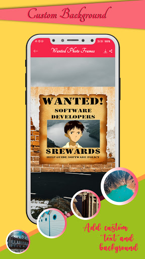 It's a fast and fun way to see all the Wanted characters come live. You can also select any one Wanted Frame from Wanted Photo Frame Editor which you like to add in your face photo and drag and you can also change the size of that Wanted Frame with finger touch. Change the size according to your face shape. Add Text on the photo to make it cooler.