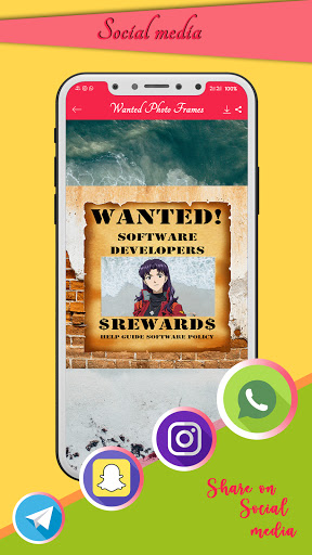 Share Edited Wanted Photo frame photos with friends and family on social apps like Whatsapp, Twitter, G , Facebook, hike, Line, WeChat and many others.