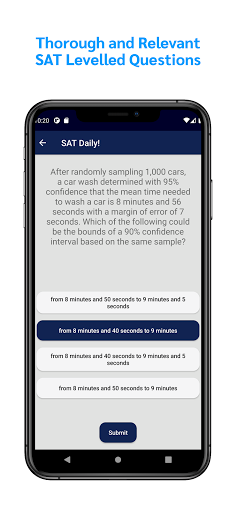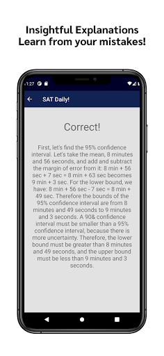 SAT Daily helps you achieve the score you need. With Daily questions in an intuitive UI, you can practice everywhere and anywhere! With questions based on real SAT questions or tested SAT skills, you will slowly be able to master SAT concepts and crack the SAT. Each question has a well-thought-out explanation so even if you get questions wrong you can always learn and not make the same mistake next time.