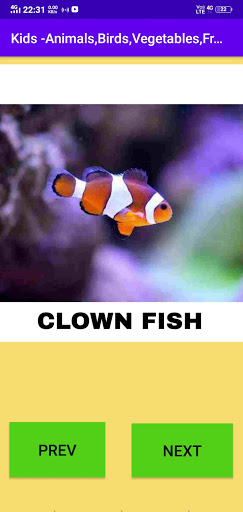 Section 4) : This section is all about sea animals (sea horse,shark,octopus,whale,dolphin,discuss fish, Betta fish, lion fish,clown fish and many others)