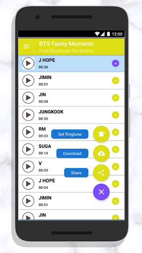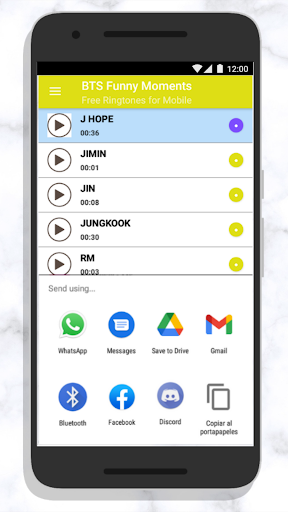 Share the app "BTS Funny Moments Ringtones" with family and friends on social networks such as Facebook, WhatsApp, Twitter, Instagram.