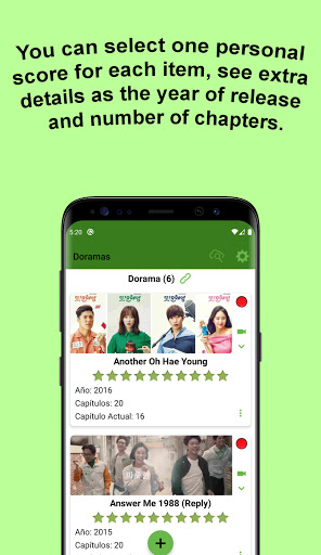 - Personal Score: You can select a personal score for each item, see extra details such as the year of release and number of chapters. Also, you can keep track of how many chapters you have seen on each item.