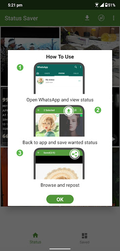 ✔ story saver app to save your status directly without asking a friend to share it with you.