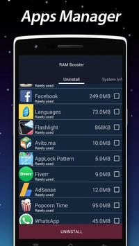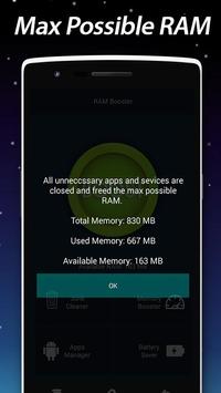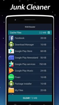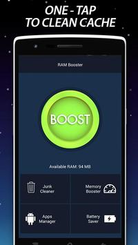 RAM Booster The best application to speed CPU up to 70%, optimize android system, clean temporary memory, clean RAM and cache, clean SD card, remove junk file, speed game and browser up, close application running under background, increase starting speed and boost internet connection speed, boost loading file and SD card. With RAM Booster, you can optimize your android devices by several simple steps.