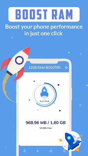 12GB RAM Booster and Cleaner is a lightweight application. Sometimes some applications or games make your phone stagnant and your 12GB RAM device works like 10GB RAM or 8GB RAM or 6GB RAM or 4GB RAM or 3GB RAM or 2GB RAM. Our RAM Booster extreme product freely makes your phone very faster and provides a one-touch RAM Cleaner app speed booster solution.