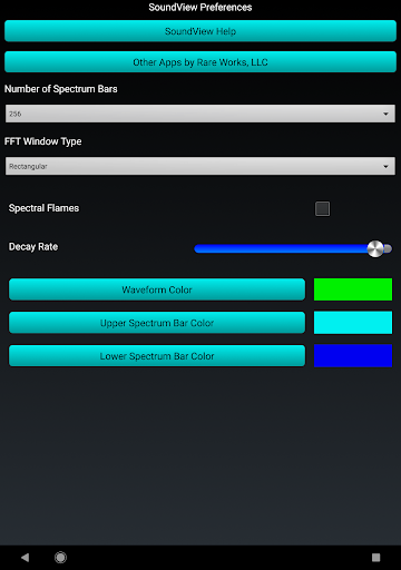 You can double tap either the spectrum bars, or input waveform to display only that view, full-screen. Another double tap will return the display to showing both spectrum and waveform. Both portrait and landscape mode are supported.