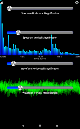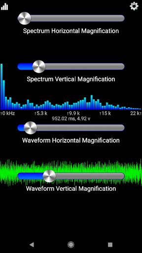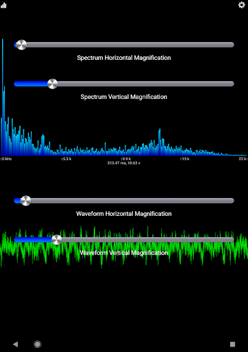 Tap the levels icon to display the window controls. There you can control the horizontal and vertical scale of both the waveform and spectrum views.