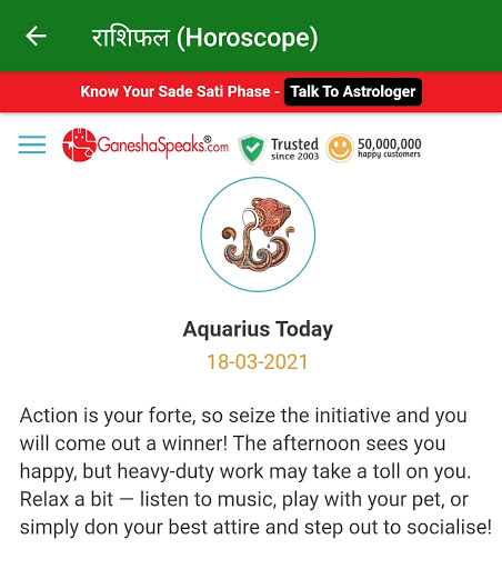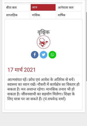 Daily Horoscope (आज का राशिफल) app provides a daily update of your Horoscope on the basis of daily, monthly, and yearly of following