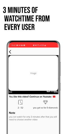 Using the Views and Watchtime Booster app you will get real views and watchtime by earning the app virtual currency and exchanging it for views and Watchtime. For each video you watch you earn 2 diamonds per minute and you can watch for 3 minutes. Doing this allows the algorithm to classify your video as a video of quality and boost its performance.
