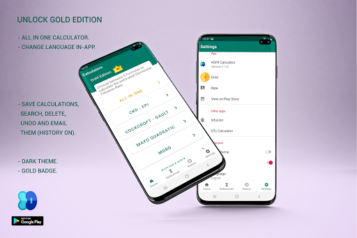 • Choose between 5 Formulas to calculate the Glomerular Filtration Rate: