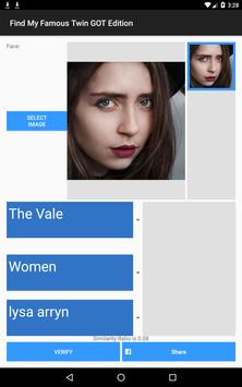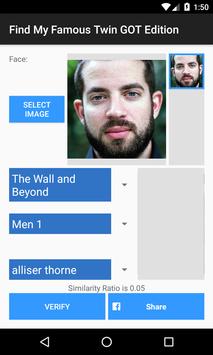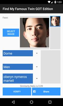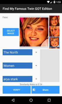 Pick your Game of Thrones character and this app takes your photos after tells you how similar the faces are on a scale of 0 to 1.