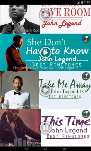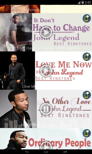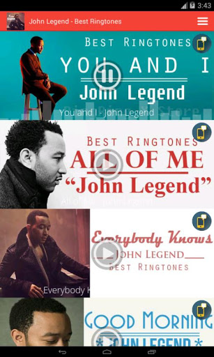 John Legend - Best Ringtones combines the hottest John Legend - Best Ringtones in the most recent time. John Legend - Best Ringtones promises to bring a different, instant style to your phone.