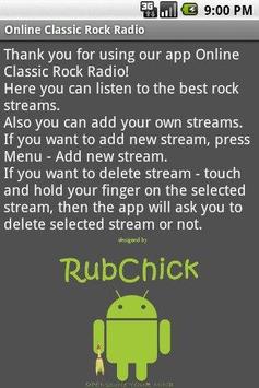 This is a simple online radio with streams in classic rock genre. You can also add your own streams or delete them. Easy to use, small size.