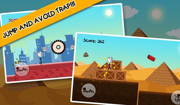 Like other Runner , the game is simple, all you need is just tap to jump and slide. With the hilarious of trollface will make you happy and help him to run as far as possible. On the way, there are plenty of traps are waiting for trollface. From deadly wheel, spike to big giant iron ball and brick throw at troll face. But be careful, there are many surprise traps, play to find out. Try to collect as many coin as you can, you can use those coin to respawn.