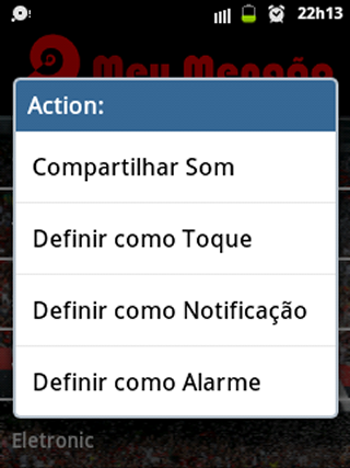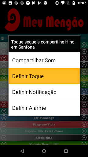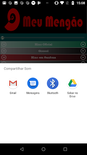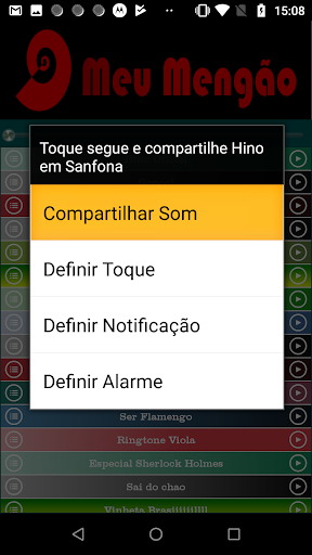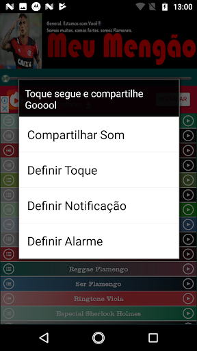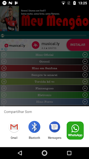 Compartilhe pelo whatsapp, gmail, sms, bluetooth e outras formas, os sons sobre a torcida, hino e hits do Flamengo.
