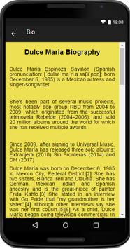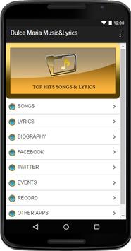 Top hits songs from Dulce Maria you can listen mp3 music with lyrics. This app free for install, select the song to Lyric you like and play.