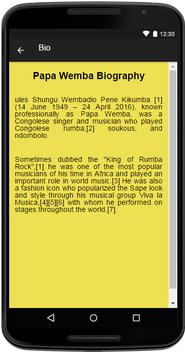 Top hits songs from Papa Wemba you can listen mp3 music with lyrics. This app free for install, select the song to Lyric you like and play.