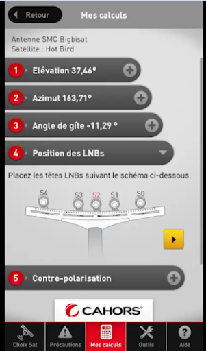 This application helps you to align your satellite dish based on your location and the selected satellite.