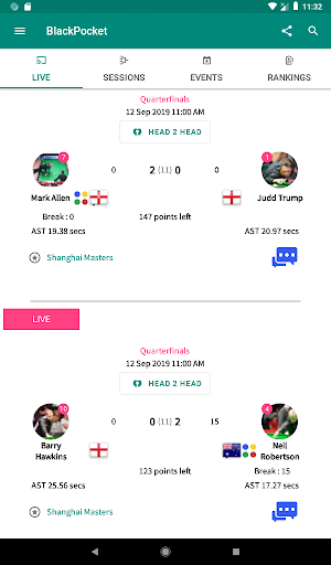Black Pocket is popular snooker scoring and information application, 15 Reds, 10 Reds or 6 Reds Table, information about every ranking and invitational tournament is displayed. Apart from this, Live Qualifiers Matches scores are displayed for these events! Very Easy to Use.!