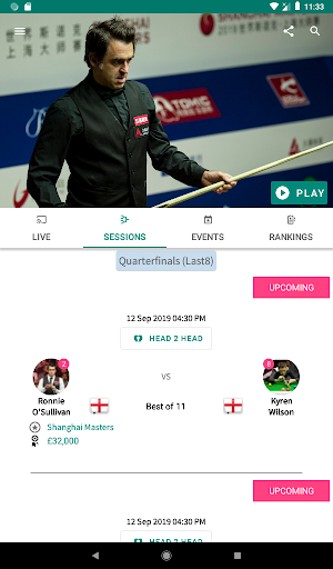 HD Streaming of Complete snooker Matches
