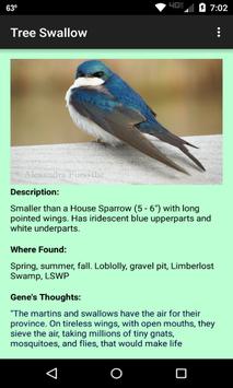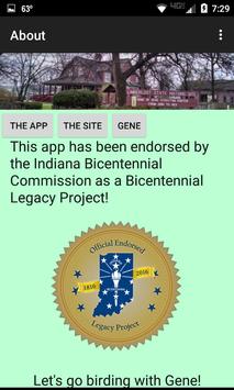 This app will give you the opportunity to go bird watching with Gene Stratton-Porter! The Bird List includes most of Gene's beloved birds that still reside in or migrate through the Limberlost State Historic Site in Geneva. Along with the times and locations you're most likely to spot each bird, an observation made by Gene about each of these species, or about their habitat or behavior, is included on each species page. Her lyrical descriptions of each bird will help you see the birds through her eyes - their beauty, talents, beneficial nature, and even their funny quirks! So grab your binoculars and your camera, head to Geneva, and walk the trails of Limberlost, Loblolly, and Rainbow Bottom as Gene tells you more about her feathered friends!