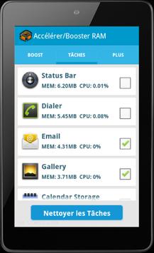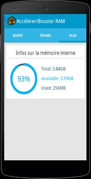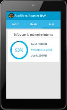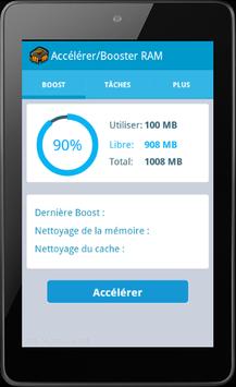 َApplication Accélérer/Booster RAM : Optimisation de la mémoire RAM. La libéralisation de RAM, ce qui entraîne appareil plus rapide et stable. De fonctionnalités qui permet l'édition de mémoire sur place lorsque le système ralentit. Dans la plupart des cas, être restauré la mémoire immédiatement libéré par certaines applications.