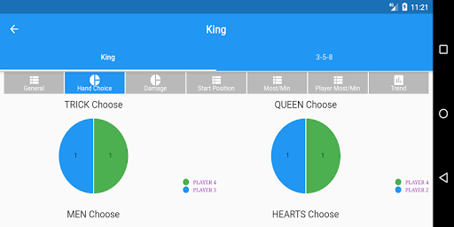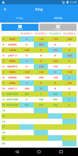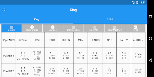 You can keep track of King and 3-5-8 without the need of a paper. You can also see the statistics of your previous games for each player.