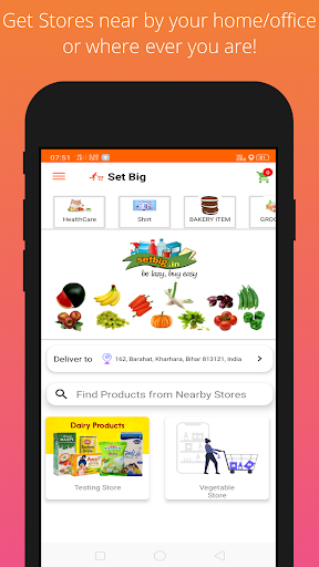 Indian Happy Shopping app with door to door delivery based on location, online payment as well as Cash On Delivery.