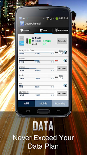 Open Channel provides unique views and controls to your data usage for each application and type of data, including videos and images. Open Channel helps you understand how you use mobile data and control the usage. Use the “Set Data Plan” feature to track your data usage and the “Set Limits” feature to avoid overage charges.