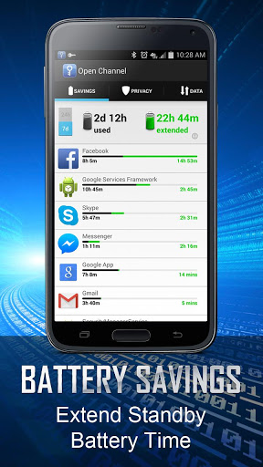 Many apps use the network and drain battery in the background. As you use your phone, we show how much they affect your battery life and how much Open Channel extends it for you. Open Channel’s smart algorithms work in the background to increase standby battery life. Unlike other battery savers, there is no need to configure any power management modes or block apps to save battery.