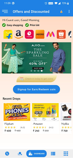 Get discounts and cashback on sarees online shopping, ethnic wear, branded shoes, best laptops, top 10 mobile phones etc, You can compare and search product also in Online shopping India app.