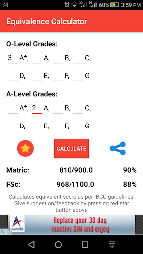 Easily find IBCC O/A levels equivalence score for Matric and F.Sc Just enter your O/A level grades to find your IBCC equivalence score.