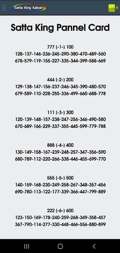 1.Satta king pansnel card