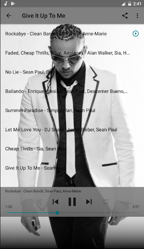 Sean Paul Album of Music is a fun application to help you listen to offline music without the Internet. In addition, Sean Paul Album of Music is also a collection of Sean Paul music albums. The high quality MP3 songs performed by Sean Paul are selected by us and put into Sean Paul Album of Music application. This is the best and most complete Offline music app for Sean Paul's lifetime albums we've compiled.