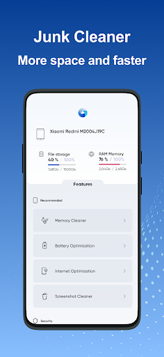Optimizer: Cleaner & Booster allows you to find and delete unnecessary files, temporary files and speed up your phone.