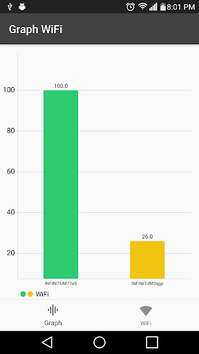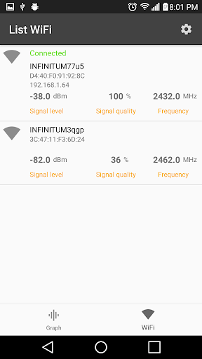 Escanea tus redes WiFi, mostrándote una lista de ellas y su gráficas.