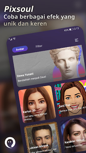 Pixsoul memiliki dua kategori efek HD untuk dicoba: Avatar, yang mengubah fotomu menjadi karya seni yang menakjubkan dan Facelab, yang menambahkan filter AI dalam videomu sehingga kamu dapat melihat transformasi menakjubkan secara real-time! Cocok untuk segala usia.