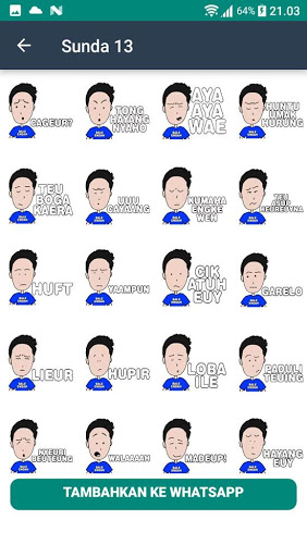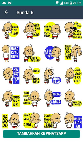 Selamat datang di aplikasi stiker-stiker dari Stiker lucu, selain Stiker Jawa, islami, Suroboyo, Stiker Betawi dan Stiker Ngapak yang Hadir di PlayStore, kali ini Puplisher Stiker Lucu kembali meluncurkan stiker-stiker WA untuk whatsapp Indonesia yang bertema Stiker Sunda Lucu untuk WhatsApp.