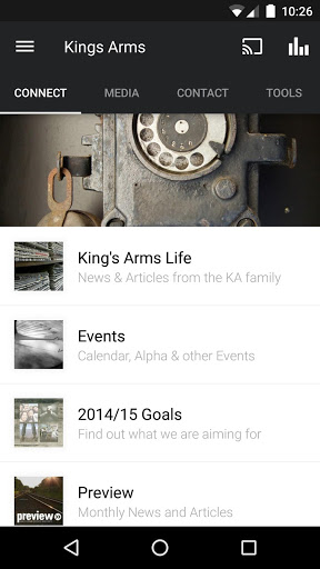 The King's Arms app was developed with the Subsplash App Platform.