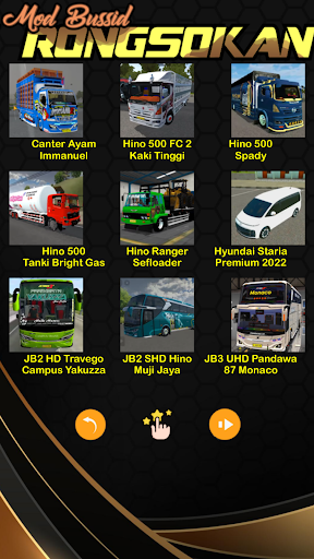 يوفر هذا التطبيق أيضًا مجموعة من Canter Truck Bussid مع العديد من التعديلات الرائعة.هناك أكثر شاحنة Gayor Canter Mod.ثم هناك حصة من أحدث Baby Bussid الذي يشتهر بالفعل.يوجد أيضًا Mod Bussid Truck Truck Wahyu Abadi 02. بالإضافة إلى شاحنات Canter ، هناك أيضًا Mod Truck Mod ثقيل مع أحمال كبيرة للغاية مثل الشاحنات الباردة تشترك في mod ud quon v2.العديد من الشاحنات الرائعة في هذا التطبيق.وبالطبع ، لا تفوت وضع وضع شاحنة المسابقة المسطحة.مجموعة من تعديل Bumel Bumel Bus في هذا التطبيق هي اختيار أروع Bumel Bumel Livery Bumel التي يمكنك العثور عليها.